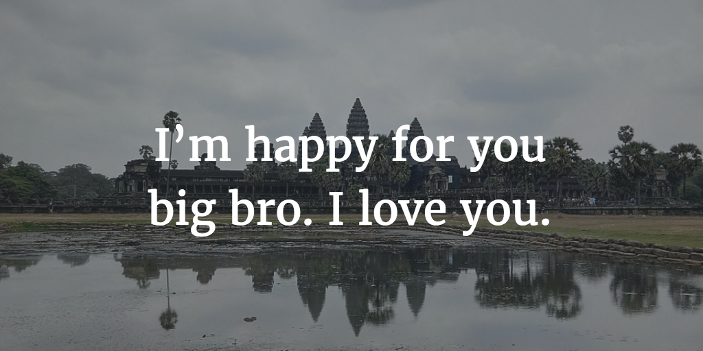 I miss you big bro. You are the only brother that left the city to go to college. Of you are the closest one to me. Sometimes I wish that you didn't go and most of the time I’m happy for you. You can finally say that you made it out and I’m happy for you big bro. I love you.