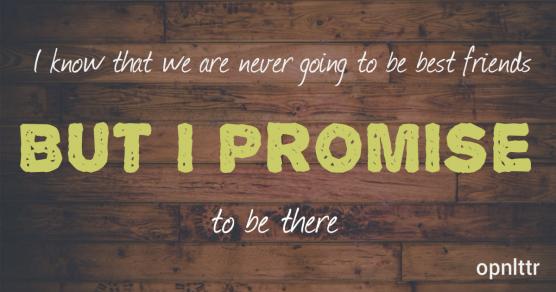 I know that we are never going to be best friends. We are very different people. But I promise to be there. I promise to take my share of the teenage strops, the highs and lows, the crazy fashion choices and the hours of waiting on the sidelines during rain soaked sports matches. I promise to be there to lend a hand where I can. I promise to be a constant even when things might get a bit mad. I promise to provide the support that both you and the children may need, whenever you may need it.